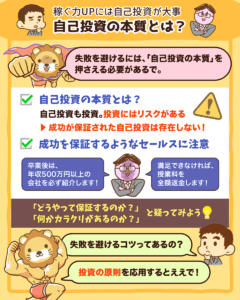 そこで、今回の記事では「失敗しない自己投資」をテーマに、以下の3つについて解説します。