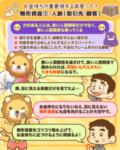BSに載らない無形資産の3つ目は「人脈(取引先・顧客)」です。