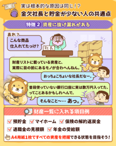 金欠社長の特徴2つ目は、財産リストに抜け漏れがあることです。