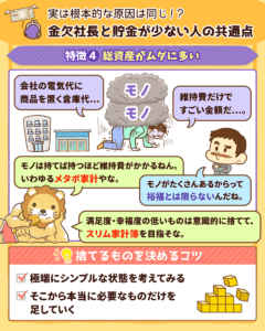 金欠社長や貯金ができない人は、総資産が無駄に多くなりがちです。