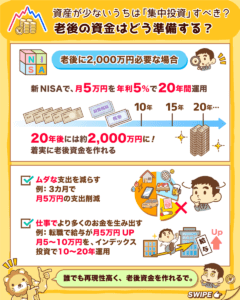 そして、リベ大が考える集中投資をしても良いタイミングは、まさに「老後の心配がいらなくなった時」なのです。