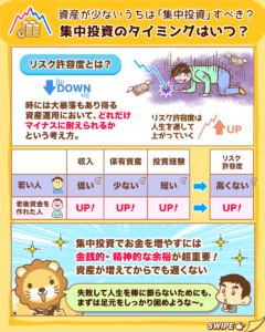 そして、リベ大が資産が増えてから集中投資をしても遅くないと考えているのは、リスク許容度を高めるためです。