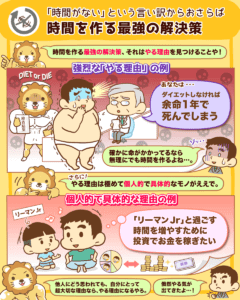 はじめに結論からお伝えすると、時間を作る最強の解決策は、やる理由を見つけることです。