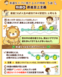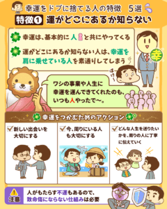 ▼図解で分かる「幸運をドブに捨てる人の特徴5選」