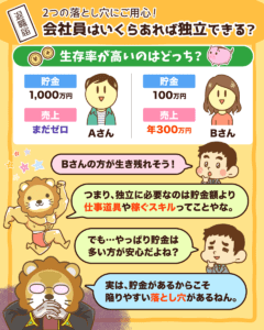 そこで今回は「6ヶ月~2年」という数字を深堀りするため、「会社員の独立資金」に関する2つのことを解説します。