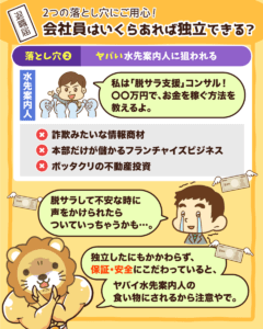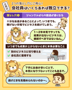 今の考えのままでは、おそらく独立はできず、仮に独立できたとしても、逆に落とし穴に落ちる可能性がでてきます。