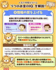 上記のような要因もあり、お金のIQが伸びにくくなっているワケです。