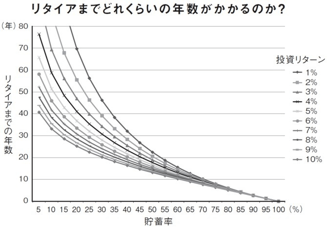 仮に貯蓄率50%でも、FIREするには20年近くかかります。