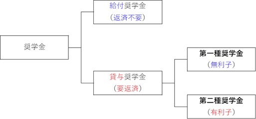 日本学生支援機構の奨学金は、大きく次のように分かれます。