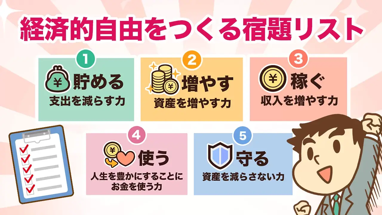 宿題リストをこなしていくと、お金の栄養不足が解消でき、強い身体(家計)を作れます。今どう動くかで、5年後・10年後の財布の中身が決まります。