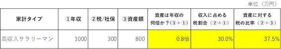 「自分の資産に対して、税金や社会保険料はどれだけの割合になるのか?」を確認するための計算です。