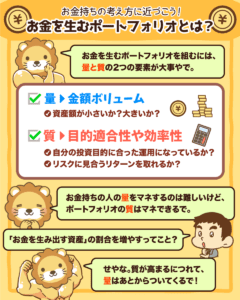 そのため、フツウの人がお金持ちのポートフォリオに近づけるためには、「質」を変化させ、高めていく意識を持つ必要があるのです。