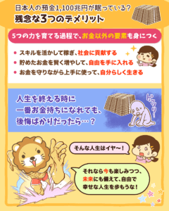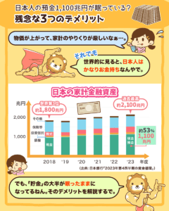 ▼図解:1,100兆円が眠ってる? 3つのデメリット