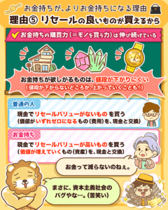 つまり、現金を使い価値がゼロになるものを買うのではなく、現金を使い資産が増えるものを買えるようになるワケです。