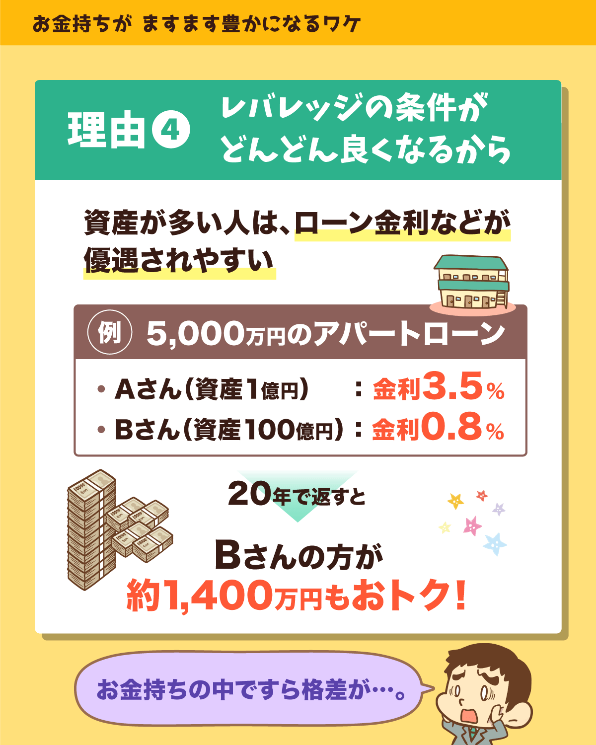 お金持ちになると、レバレッジの条件が良くなり続けます。