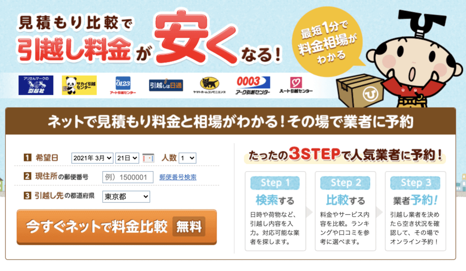 それぞれの会社に確認するのが面倒な場合、複数の会社に一括見積もりができる「引越し侍」がおすすめです。