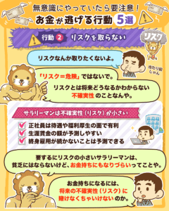 また、お金と同様にリスク自体にも良い悪いはなく、「どっちに転ぶか分からない」というだけです。