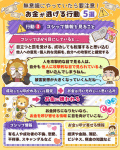 一方で、ゴシップ情報はお金を遠ざける情報を指します。