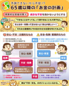一方で、「自分はお金は無いけどなんとかなるし、大丈夫。」という人は左上の「安心・危険」のゾーンにいます。
