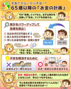 お金の不安を抱えている人は、左下の「不安・危険」からスタートすることが多いです。