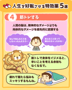 そして、「マインドのことばかり言われても辛いものは辛い…」という人に向けて、解決のための具体的なアクションも紹介しました。