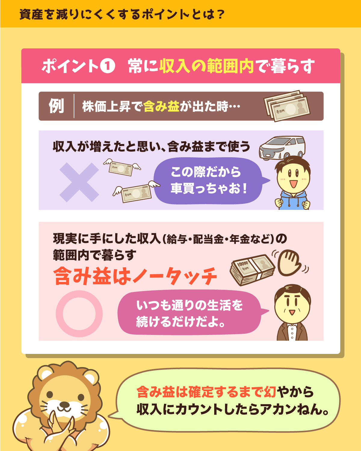 ポイント①:いつどんな時も「収入の範囲内」で暮らす