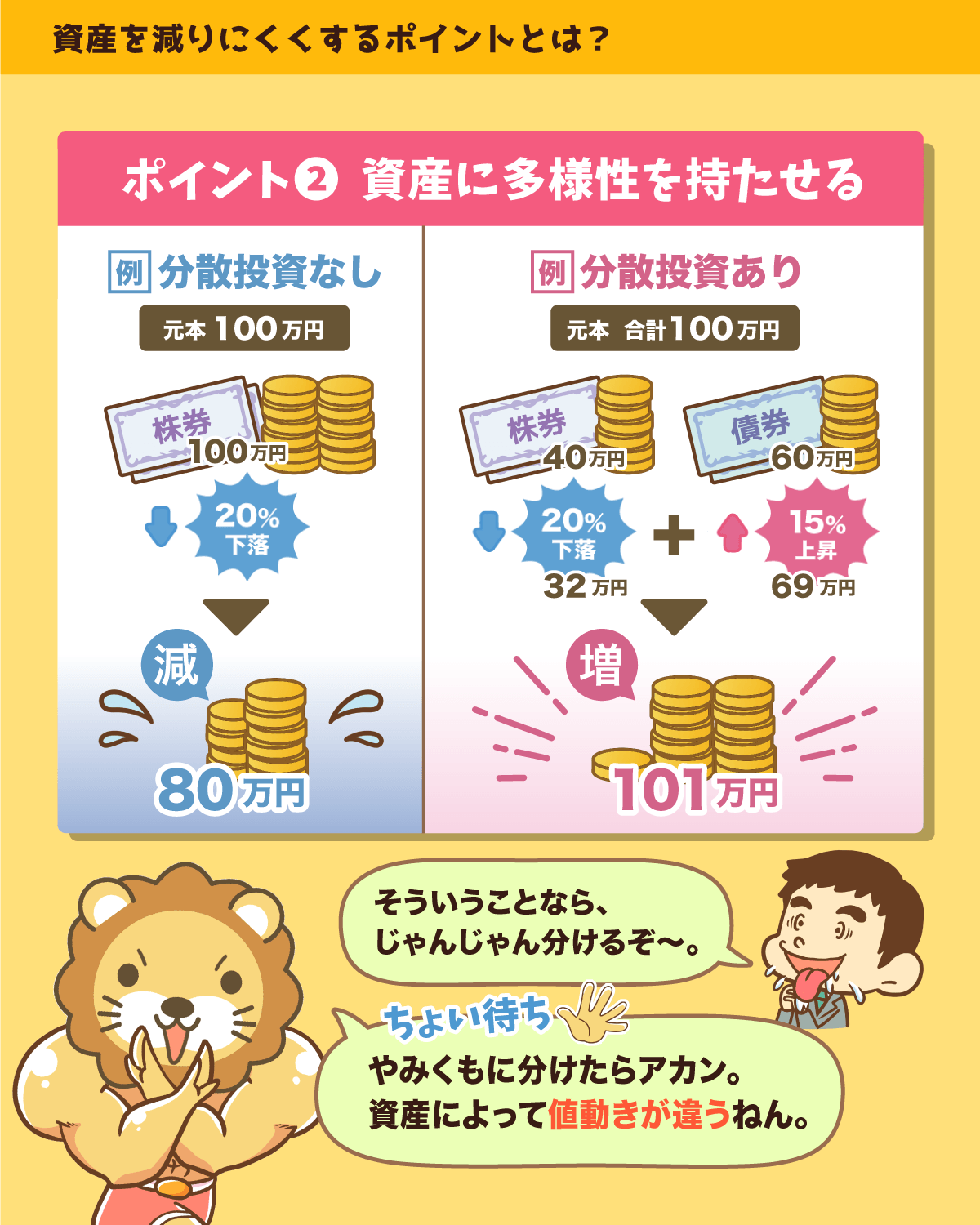 そのリスクを軽減するためのキーワードが「資産の多様性」です。