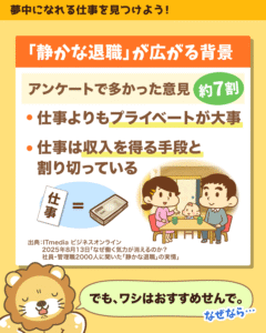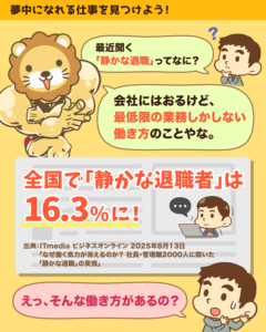 このような、「職場に居ながら、仕事を辞めているのと変わらない状態」に対して、静かな退職と自ら名付けたワケです。