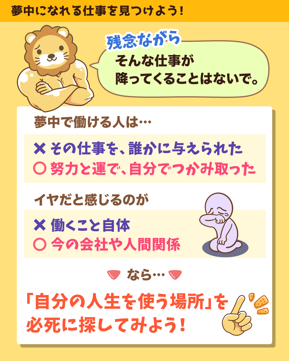 とはいえ、皆が皆、仕事に夢中になれるワケではないという意見もあるでしょう。