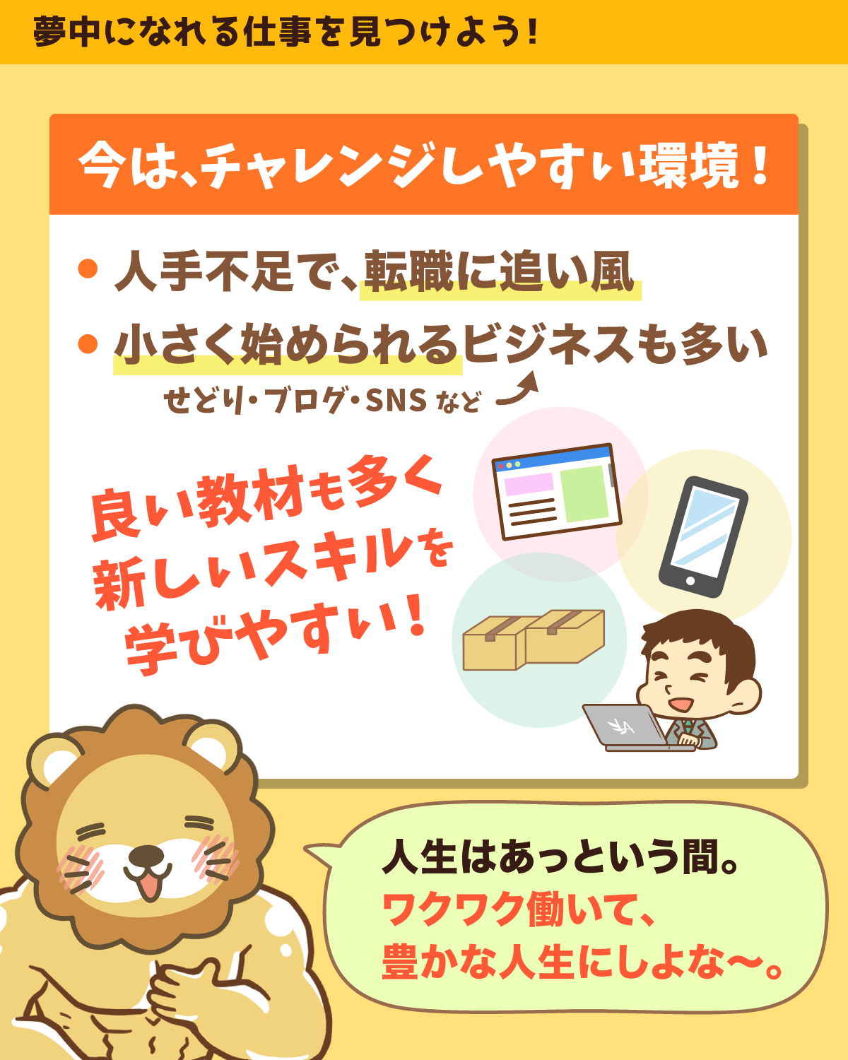 一方、夢中になれる仕事を見つけられずに、人生を終える人もいるでしょう。