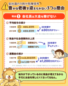 しかし、先ほど紹介したように、今のサラリーマンは大金を稼ぐことが難しく、退職金も減り続ける時代です。