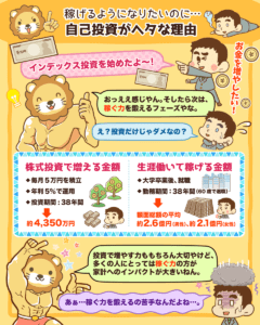 ただ、ここで皆さんに認識してほしいことは、投資で大きな利益を得られる可能性があるという点ではなく、働いて稼ぐ方が家計に与えるインパクトが大きいということです。
