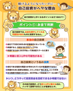 次に、自己投資がうまくなるポイントを解説するね^^