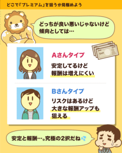 リスクはあるものの、報酬をドカンと増やせる可能性があるのは、Bタイプの人です。