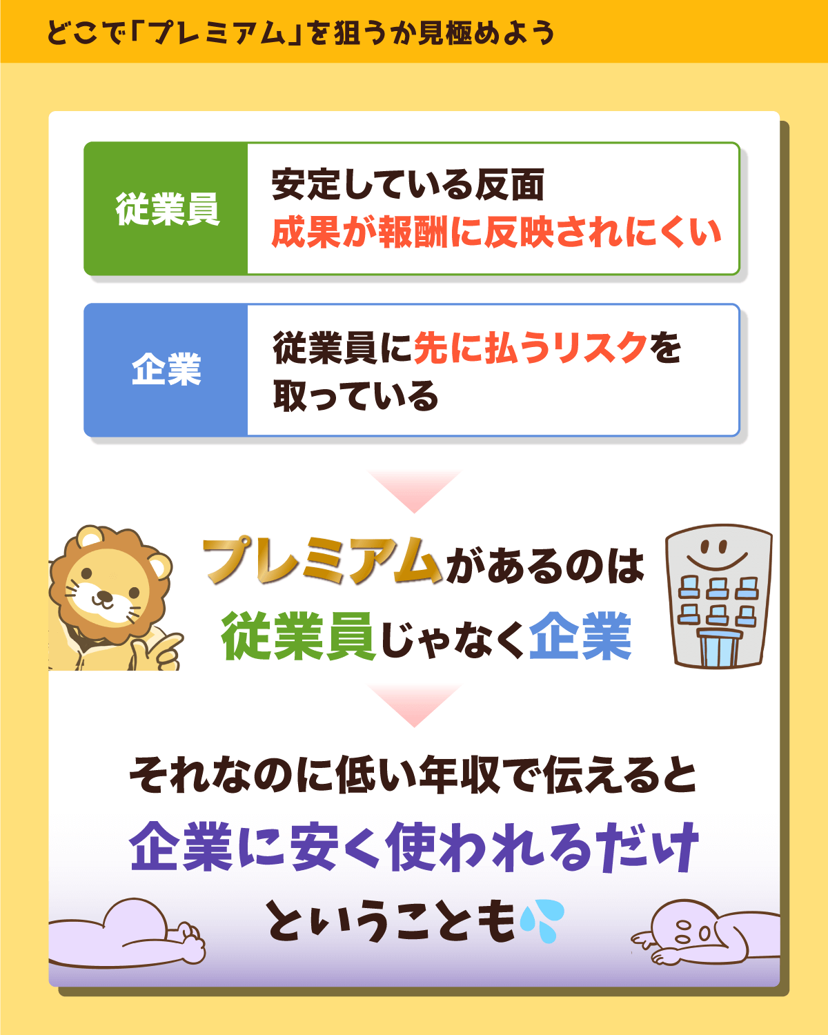 なぜなら、従業員というポジション自体に、そもそもプレミアムがないからです。