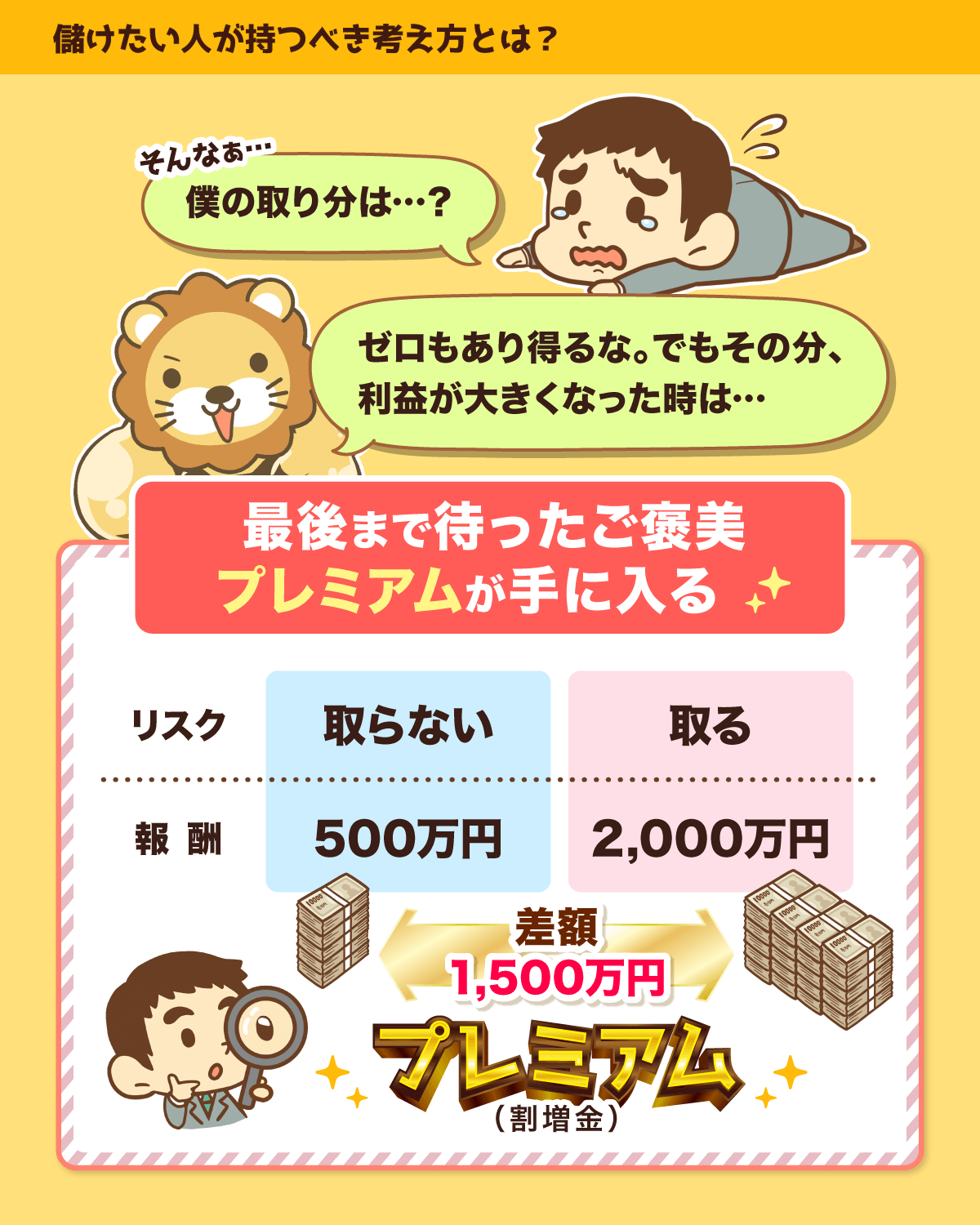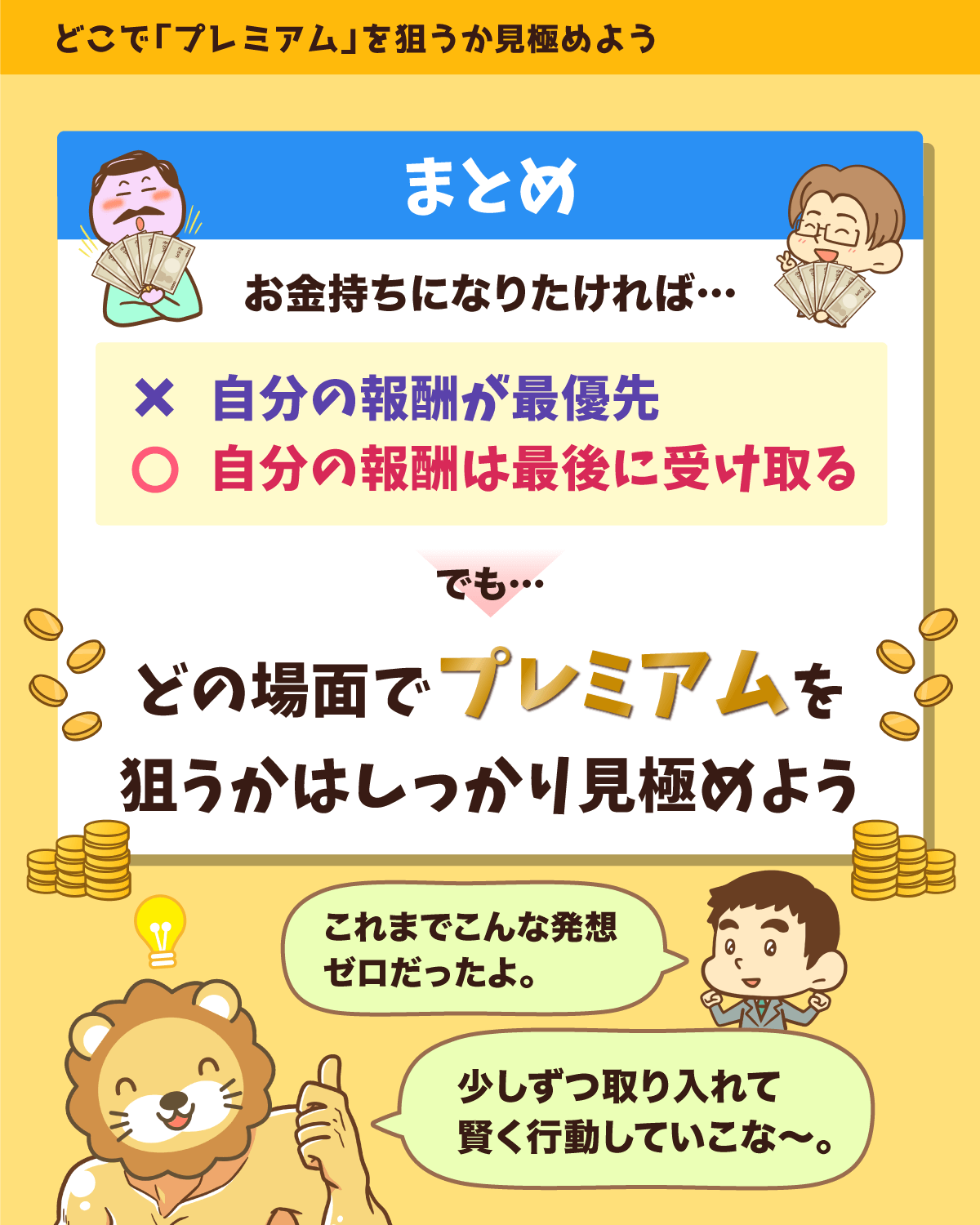 お金持ちになるには、どうしても「プレミアム」を積み上げる必要があります。