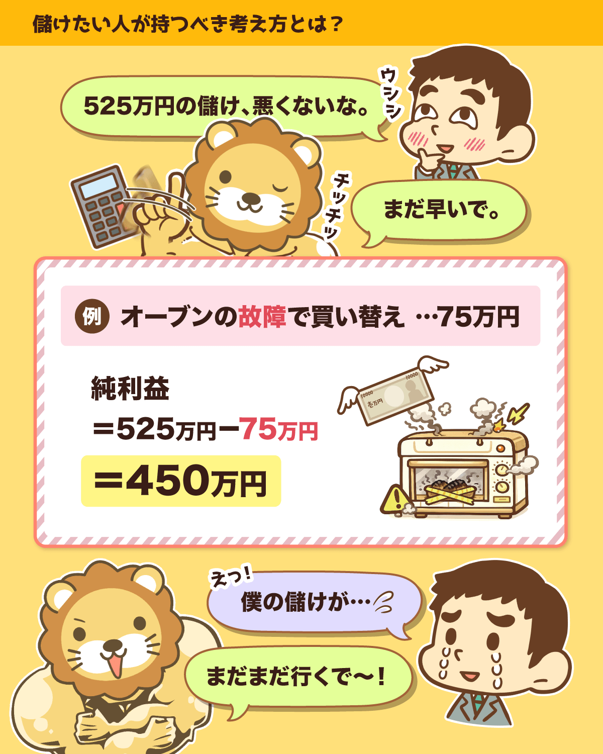 結局、リベ大自動車の最終的な利益は450万円ということです。