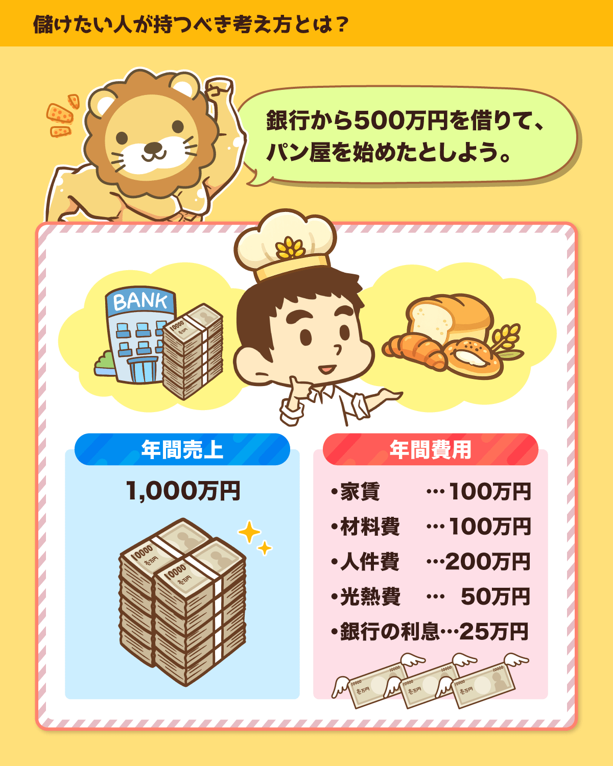 差し引き、利益は700万円です。