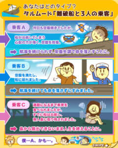 ▼図解:あなたはどのタイプ? 難破船と3人の乗客