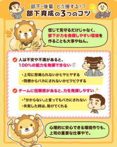 上司自身もその失敗を反省しつつ、共に成長していきましょう。
