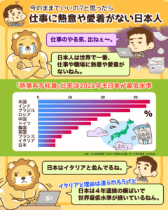 日本人は、世界で一番仕事や職場に熱意・愛着がないというニュースです。