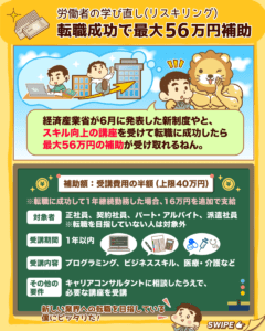 ニュース⑦:在職者の学び直し、転職成功で最大56万円補助 経産省