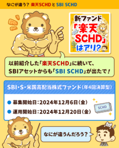 ちなみにSBI SCHDの募集開始日は2024年12月6日(金)、運用開始日は2024年12月20日(金)です。