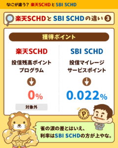ポイントに関しても、「雀の涙」とはいえ、SBI SCHDに軍配が上がりそうな状況です。