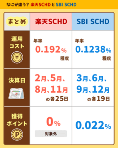 では、「楽天SCHD」と「SBI SCHD」の違いについて見ていきましょう。