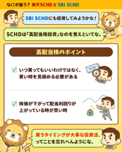 そして、あくまでも高配当株投資なので、「いつ買ってもOK!今すぐ買おう!」というより、「タイミングを見て、良い時に投資する」が基本です。