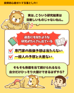 それは「株の世界において、専門家の予想はほとんど当たらない」という現実です。