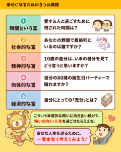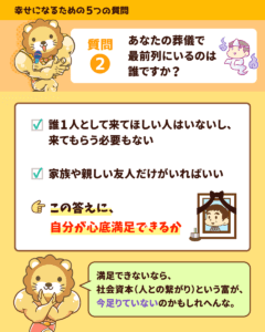 一方で満足できなかった人は、「社会資本という富」が足りていないのかもしれません。