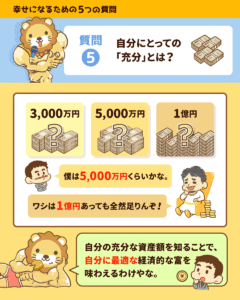 皆さんにとっての充分は、「3,000万円?」「5,000万円?」「1億円?」どのくらいでしょうか?