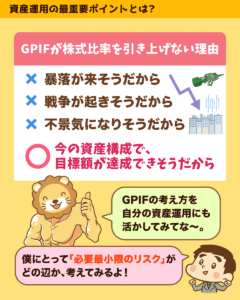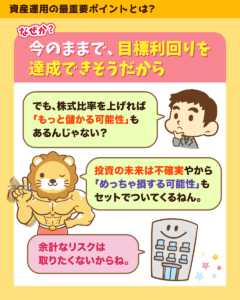 要は、現状でも目標は達成できそうなので、これ以上リスクを取る必要はないというワケです。